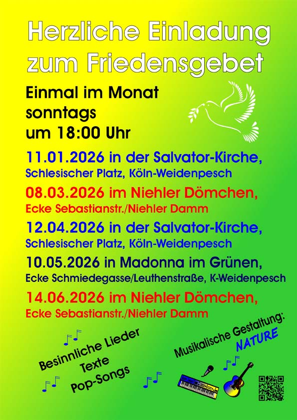 Montag, 23.02.2026, 19:00 Uhr: Taize für ALLE in der Salvator-Kirche, Schlesischer Platz, Köln-Weidenpesch |